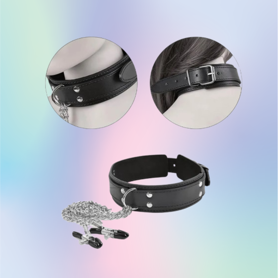 Con un diseño único que integra sujeción para el cuello y el pezón, esta pinza no solo estimula los pezones, sino que también añade un elemento de control y conexión a los juegos de pareja. Los clips están sujetos por una cadena que agrega peso y estimulación.
